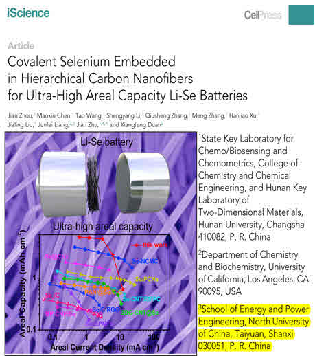以通讯单位再次在Cell子刊iScience上发表了题为 “Covalent Selenium Embedded in Hierarchical Carbon Nanofibers for Ultra-High Areal Capacity Li-Se Batteries”的论文,该项研究由湖南大学联合色情小说
