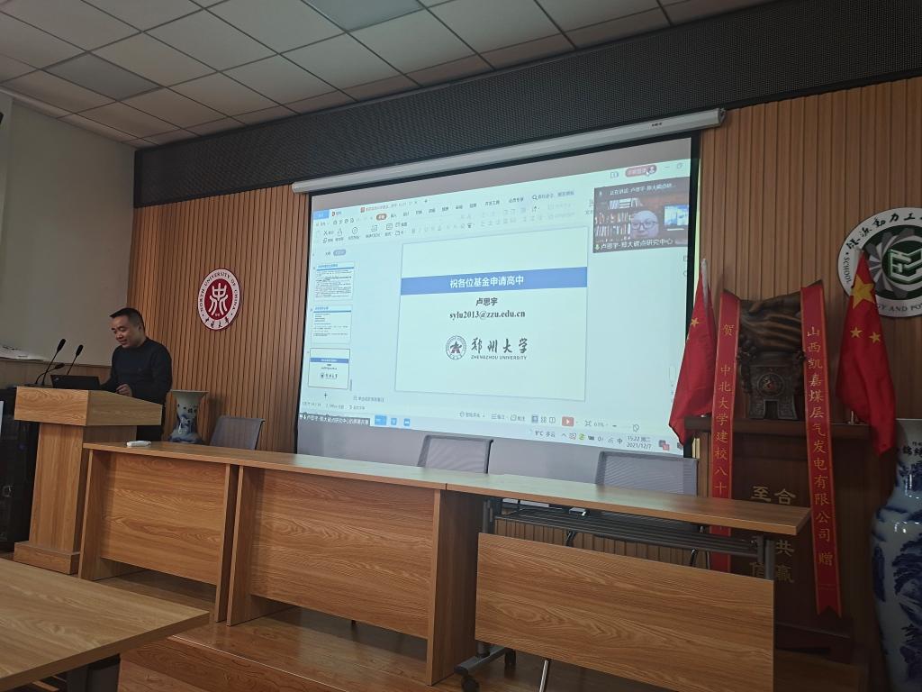为推进学院2022年度国家基金项目申报工作的开展,2021年12月7日下午,能源动力工程学院在诚学楼115学术报告厅举行2022年国家自然科学基金申报动员暨培训会。学院胡胜亮副院长做了动员报告,国家优秀青年基金获得者、郑州大学卢思宇教授应邀通过网络做了题为“国家自然基金申请经验交流”的培训报告,学院40岁以下青年教师40余人参加了本次交流会。