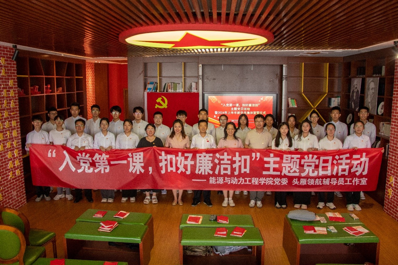 党委、头雁领航辅导员工作室于2024年7月1日下午,在校图书馆马克思书屋联合开展“入党第一课,扣好廉洁扣”主题党日活动暨2024年预备党员集体入党宣誓仪式。院党委书记胡向明、各学生党支部书记、本学期新发展的23名预备党员参加了本次主题党日活动,活动由院党委副书记任雁主持。