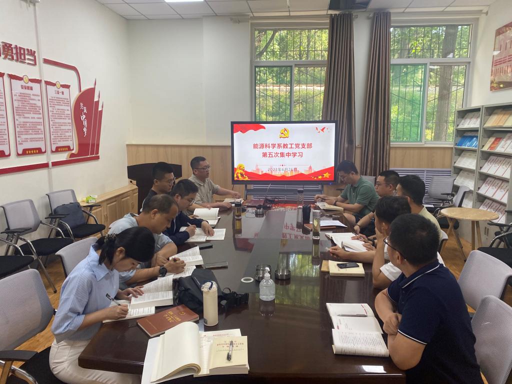 2023年6月27日上午,能源科学系召开“学习贯彻习近平新时代中国特色社会主义思想主题教育”第五次专题学习会议,学习内容为《习近平新时代中国特色社会主义思想专题摘编》中“(十)坚持全面依法治国”至“(十四)把人民军队建设成为世界一流军队”。