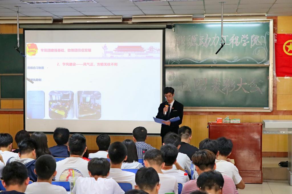 团委工作的情况和取得的成就。随后,院党委副书记兼副院长赵永娟老师宣读了此次大会受表彰的集体和个人名单。其中,获奖的优秀团支部和个人展示了他们靓丽的风采和优秀的表现,给青年树立了榜样,激励着青年向标兵看起,做杰出共产主义青年。之后,同学们观看五四表彰视频,在榜样的力量中感受和传递五四精神。并且,五四红旗团支部和十佳团日活动团支部就团支部的各个方面工作展现了团日活动的开展情况和团支部的建设以及所取得的成就。在充满激情与斗志的氛围中,院团委副书记王敏妍带领同学们重温了入团誓词。最后,校团委副书记刘玉巍老师进行了总结讲话。她向能动学院的同学们表达了节日的祝福,肯定了能动学院团委工作的成就,并向色情小说