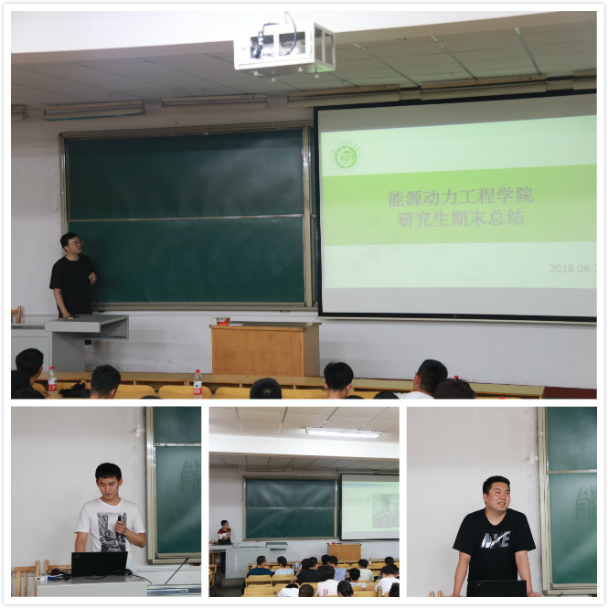 本次总结大会中,由研二的李杰、谢俊同学以及研一的郑海、曹睿鑫四名同学对上年学习工作情况进行总结。谢骏、李杰同学从自身讲起,总结了自己在过去两年中的学习和生活情况,主要讲述了自己在研一与研二的学习过程中取得的成果、遇到的问题以及自己思想的转变。郑海与曹睿鑫同学对研一班在过去一年中的的日常学习工作、组织工作、党建工作、班级文体活动以及学年总结五个方面进行总结。最终,能源动力工程学院学期期末总结大会在热烈的掌声中圆满结束。
