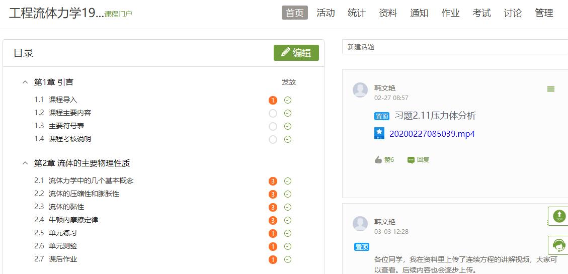 《工程流体力学》课程通过学习平台,以丰富的教学资源、有序的教学环节设计、闭环的教学过程体验,实现了教与学的过程从容有序、教学相长。