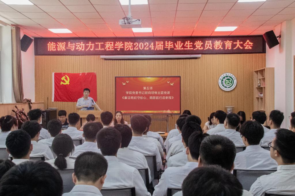 学院党委书记胡向明作了题为《廉洁明纪守初心,砥砺前行启新程》的主题党课。胡书记希望广大党员同志能够站在世界百年未有之大变局中去思考和谋划未来的发展,为全体毕业生党员提出了更高的发展方向。他要求大家廉洁明纪不忘初心,砥砺前行永攀高峰,始终将入党誓词铭记于心,做到学纪、知纪、明纪、守纪。