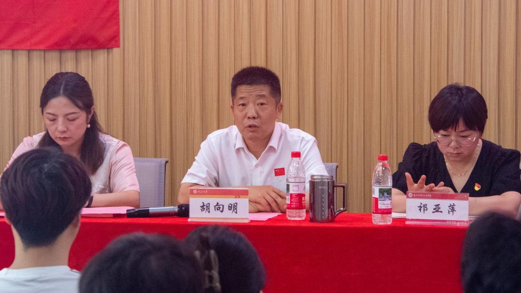 院党委书记胡向明讲授了《学习中央八项规定精神,走稳走实人生新征程》主题党课。胡书记结合中央八项规定精神的深刻内涵,嘱咐即将踏上新征程的毕业生党员,要将纪律和规矩挺在前面。他强调,中央八项规定不仅是作风建设的“铁律”,更是党员立身行事的准则,大家要牢记党员身份,严格要求自己,将中央八项规定精神融入工作生活的点滴,在新岗位上积极践行初心使命,在攻坚克难中锤炼党性修养,以实际行动将入党誓词转化为服务社会、奉献国家的生动实践,走好人生每一步。