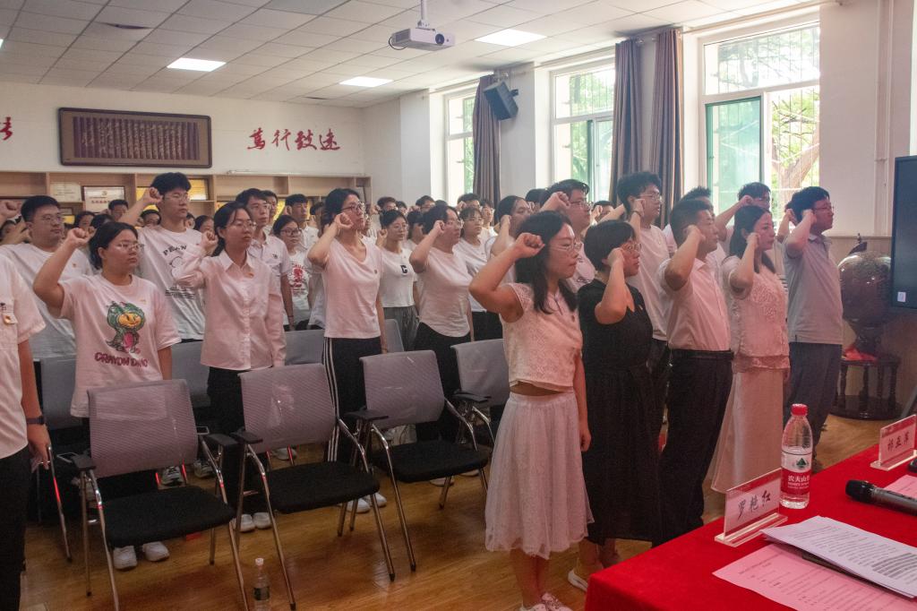 本科生党员王晨乾带领全体师生庄严举起右拳,重温入党誓词。铿锵有力的誓言在会议室中回荡,激荡着每一位党员的初心与使命,也为本次毕业生党员教育大会画上了圆满且意义非凡的句号。