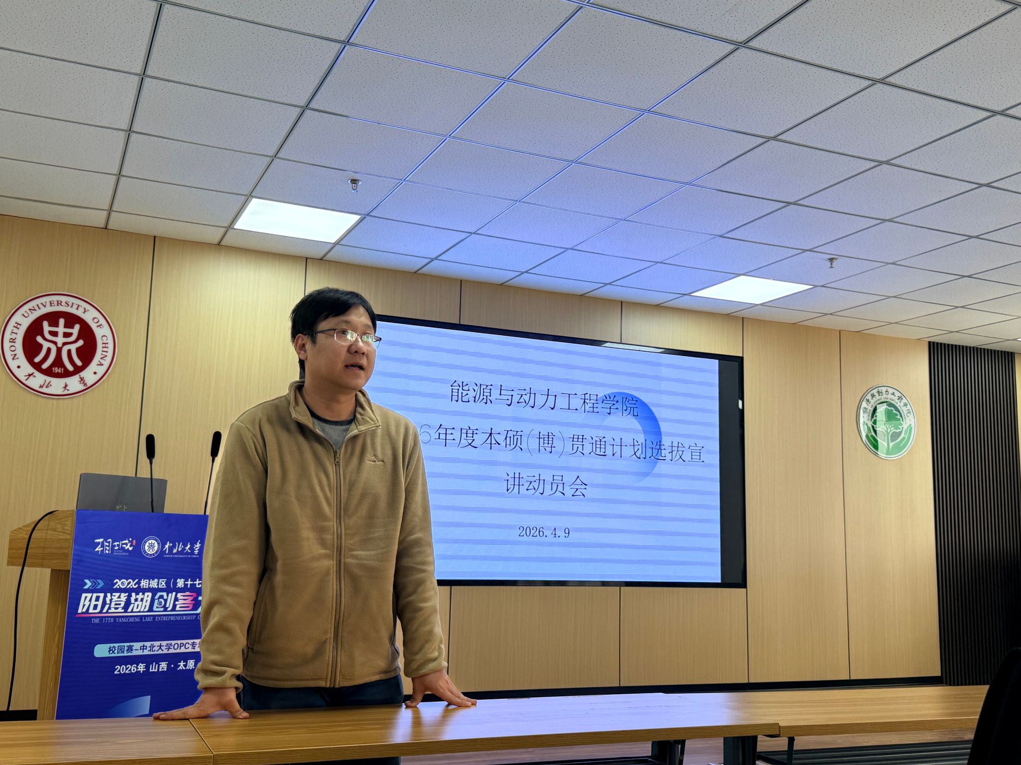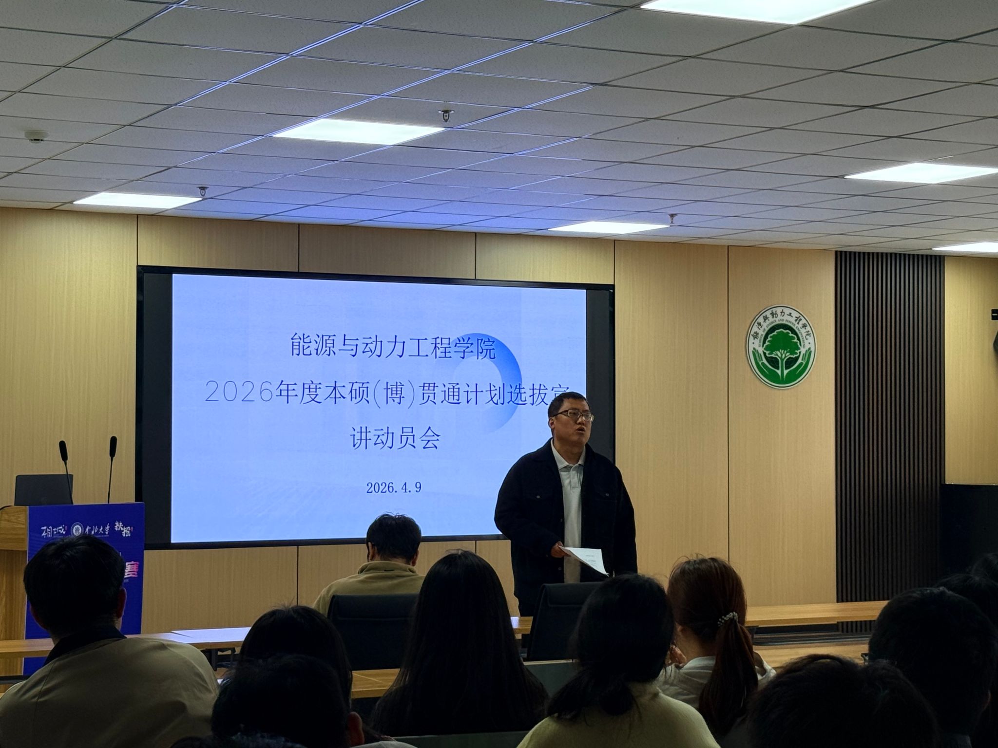 在新能源大楼A202教室成功举办2026年度本硕(博)贯通计划选拔宣讲动员会。能源与动力工程、新能源科学与工程两个专业共计69名同学参加会议,学院教学科科长李世民担任主讲,辅导员李涛组织并出席此次活动。