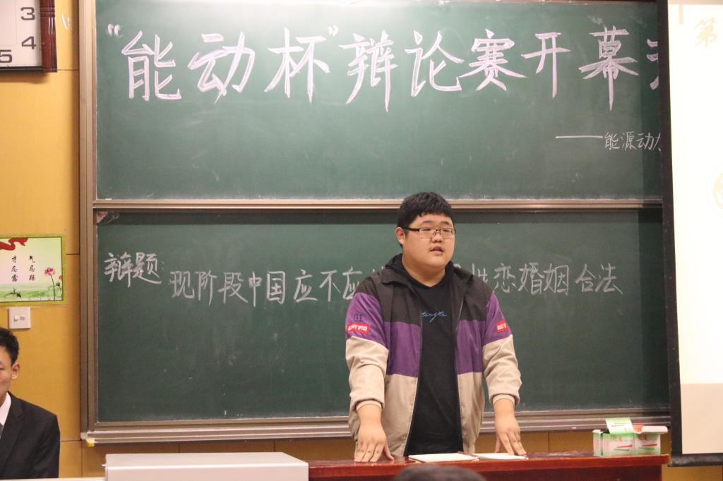 在热烈的掌声中,典礼拉开序幕。全体同学观看了各班辩导的视频介绍,展现出了各位辩导口若悬河,胸有成竹的风采。接着,优秀辩导郭瑞豪同学致辞,他表示辩论能提高语言表达能力和逻辑思维能力,鼓励大一新生积极参与,坚持到底。在辩论表演赛开始之前,辩论队成员对辩论赛规则进行了详细的介绍。继正反双方慷慨激昂的自我介绍后,双方就“现阶段中国应不应该同意同性恋婚姻”这一辩题展开辩论。其中,双方选手在立论,质询,自由辩论等环节中思路清晰,字字珠玑,赢得现场掌声如潮,将比赛推向了高潮。最后,由能源动力工程学院团委学生会学习部部长杨磊为本届能动杯辩导颁发聘书,此次能动杯辩论赛开幕式暨表演赛圆满结束。