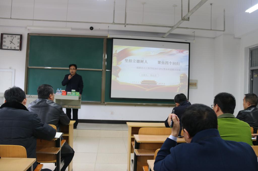 教师的教育教学思想,进一步更新教育思想观念,大力推进教育改革和机制创新,切实提高学院的教学水平和人才培养质量,能源动力工程学院于11月5日下午4点在15301教室举行“坚持立德树人,聚焦四个回归”知行讲坛暨本科教育思想大讨论专题讲座。讲座由院党委书记李运芝主持,由山西大学社会科学处处长侯怀银教授主讲,学院全体教师,学生骨干聆听讲座。
