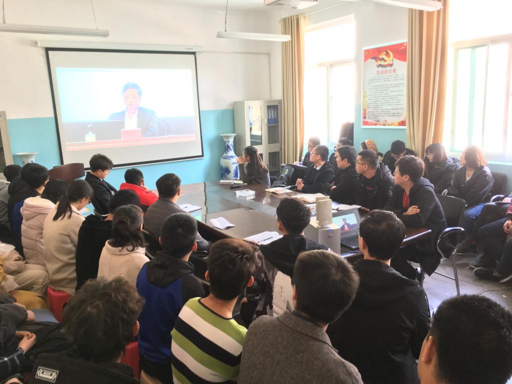 全体师生党员在学院3号楼201会议室观看了报告,在全院范围内掀起学习热潮。