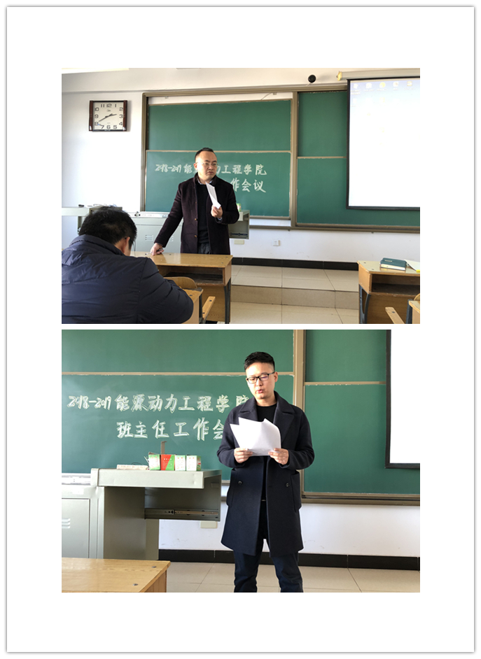 3月12日,能源动力工程学院于15506H召开了2018-2019学年第二学期第一次班主任例会。会议由学生科副科长李清岩主持,各班班主任、辅导员参加。