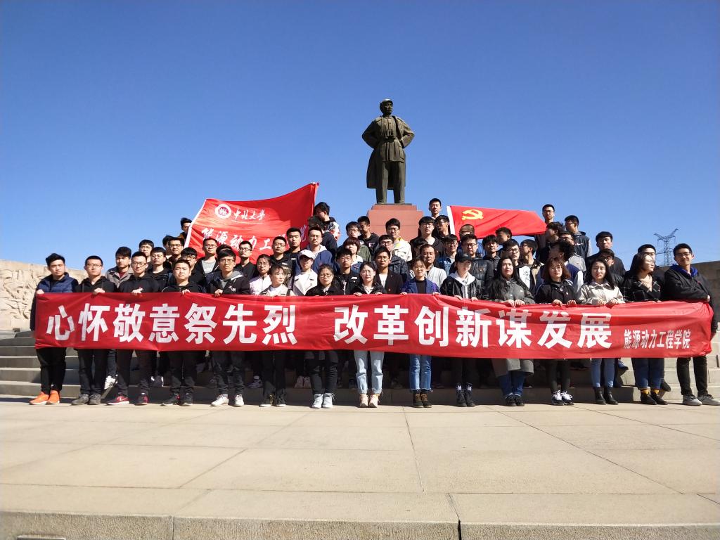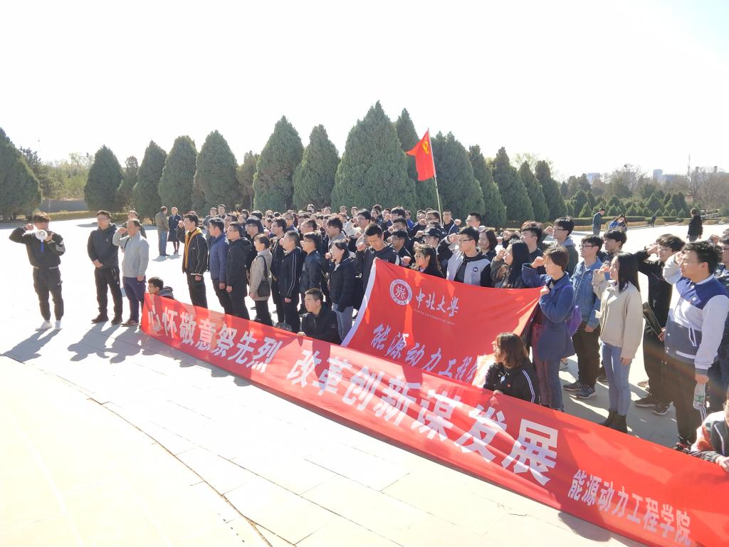 2019年3月30日,能源动力工程学院党委组织学生党员开展“心怀敬意祭先烈,改革创新谋发展”的主题党日活动。上午9:00,党员们有序来到牛驼寨烈士陵园,在庄严肃穆的“解放太原纪念碑”前,乔洋老师带领大家举行了简短而又隆重的悼念仪式。全体党员在高耸的纪念碑前向革命先烈默哀一分钟。能源动力工程学院专职组织员叶增民老师作了讲话。他希望大家学习先烈们无私无畏的气概、追求真理的信念、不屈不挠的意志、战胜困难的勇气,坚定共产主义信念,勤奋苦读,完成历史和时代赋予的庄严使命,开拓美好幸福的未来。仪式结束后,师生们在陵园工作人员带领下参观烈士纪念馆,了解先烈们为革命事业而献身的英勇壮举。最后党员同志们怀着崇敬的心情祭扫烈士陵墓并敬献了菊花。