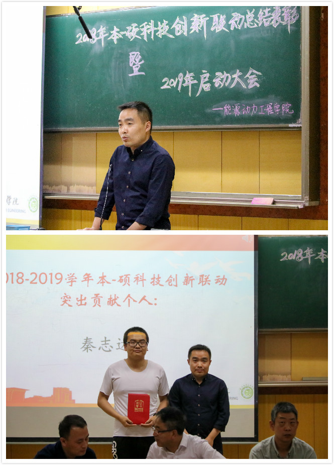 为增强能动学子创新创业能力,充分发挥优秀研究生在本科生群体中的先锋带头作用,5月24日下午7点半能源动力工程学院在09302举办了2018年本硕科技创新联动总结表彰暨2019年启动大会。出席本次大会的嘉宾有院党委书记李运芝、院长刘汉涛、副院长张翼、副院长胡胜亮、院团委书记李晓彧、学生科科长叶增民、辅导员乔洋老师。