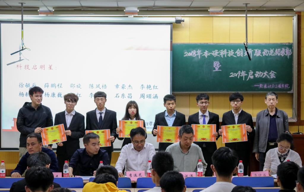 电子图书馆的重要用途,鼓励大家利用好这一利器,为科技创新提供支持。院长刘汉涛公布了科技启明星、科技之星、科技之团、2018-2019学年科技创新优秀指导导师的名单,并给他们进行颁奖。随后副院长张翼宣读了2019年本-硕科技创新联动的实施方案,并公布了指导组、反馈组等各小组的工作以及对各级学生工作的安排。18级学生代表高晨敏也向大家展示了新一届能动学子的责任与担当。接着副院长胡胜亮对能动学子提出了主动学习、解决问题、总结创新等要求并表达了对能动学子在科技领域再创佳绩的期望。最后李运芝书记宣布2019年本科生-研究生科技创新联动工作启动,他提出”纸上得来终觉浅,绝知此事要躬行”的学习理念。学生不能仅仅局限在理论知识的理解上,更要将其能够应用在我们的平时的科创活动中。本次大会在同学们的掌声中落下帷幕。