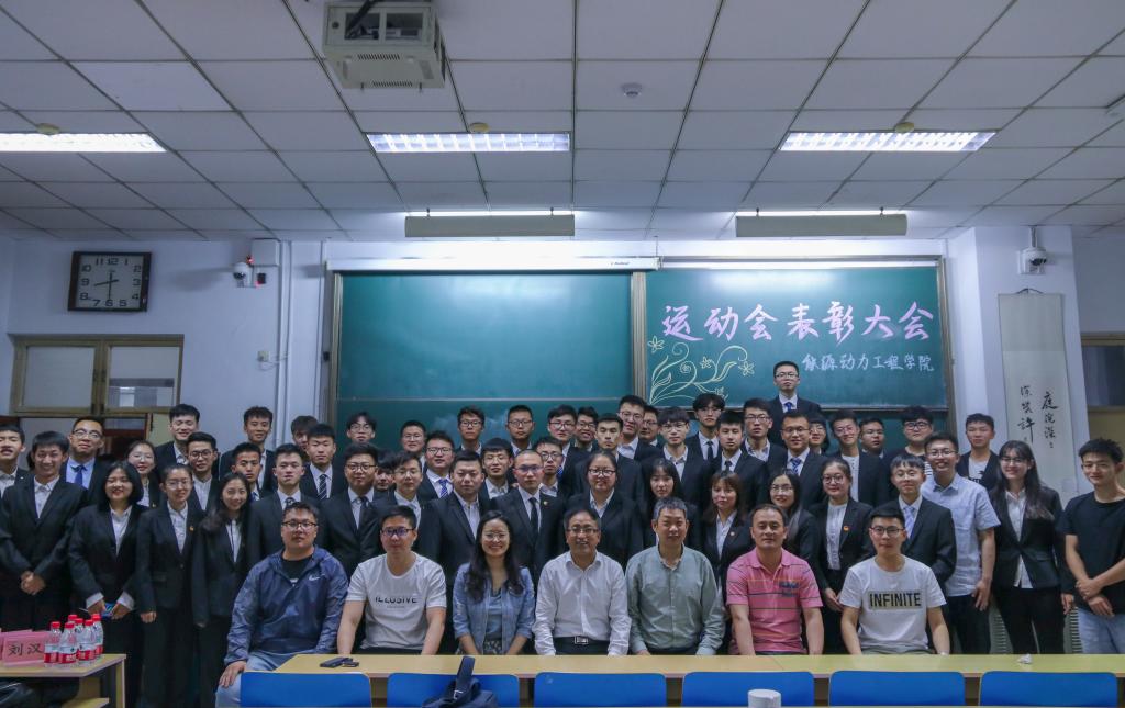同学们在本届运动会中的出色表现,能源动力工程学院于5月28日7点30在11212教室举行运动会表彰大会。出席本次大会的嘉宾有院党委书记李运芝、院长刘汉涛、学生科科长叶增民、院团委书记李晓彧、学生科辅导员乔洋,研究生辅导员杨勇和唐金保出席了本次大会。