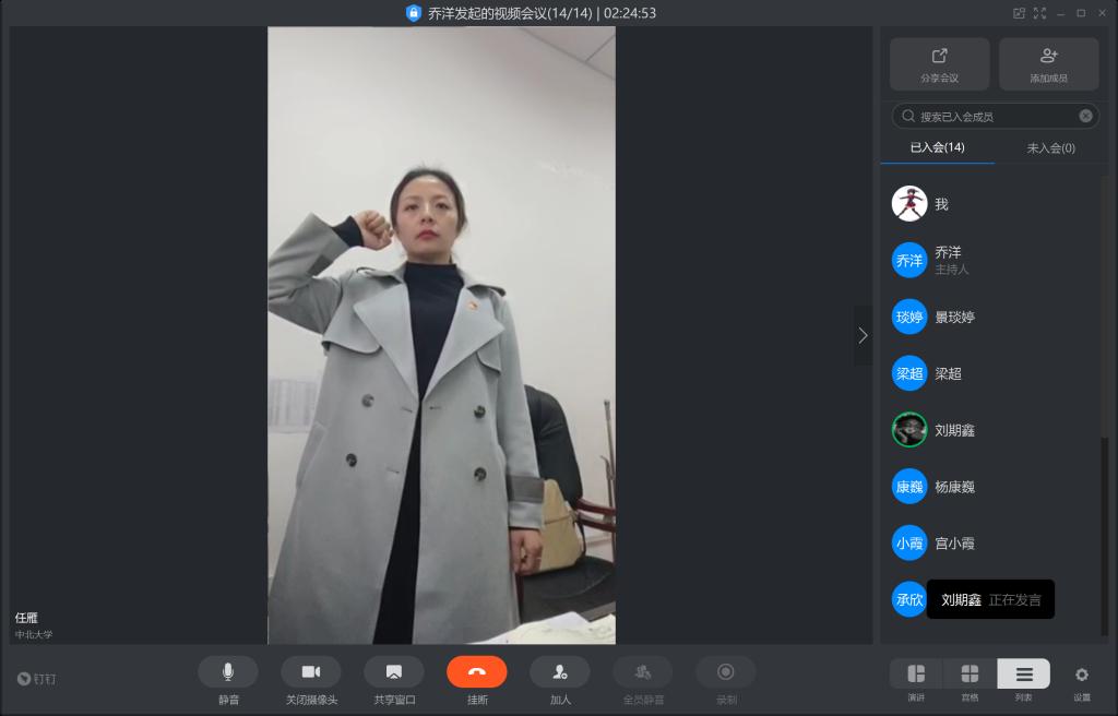为进一步激发青年学生的爱国情怀,凝聚党员力量,争当战“疫”先锋,头雁领航和柏树林下辅导员工作室结合自身工作实际,将团体辅导应用于学生党员活动中,于3月21日下午面向能源动力工程学生党员骨干联合举办爱国主义云团体活动,头雁领航工作室负责人任雁、柏树林下工作室负责人李晓彧、能源动力工程学院学生党建办公室负责人乔洋、11名党员骨干参加了此次活动。