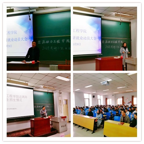 为了让2021届毕业生更好的认清考研和就业形势,进一步增强同学们考研和就业的竞争力,能源动力工程学院2021届毕业生考研就业动员大会于10月9日下午16:30在11312H教室顺利举行。此次动员会邀请到学院党委书记李运芝、党委副书记兼副院长任雁、科研科科长王军出席,就业辅导员周甜甜、毕业班班主任,2021届毕业生以及部分低年级同学参加了会议。会议由毕业生代表郭锡涛同学主持。