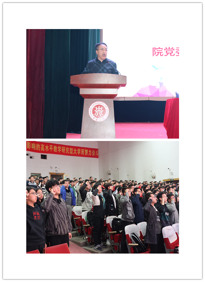 随后,李运芝书记寄语新生,他希望看到大家不平凡的闪光点,同学之间互助友爱,战胜一切困难和挑战,共同完成大学蜕变,书写不同凡响的卓越人生。同时他也教导同学们,与其用泪水博取同情,不如用汗水赢得尊重,大学是求学的关键时期,只有将自我融入奋斗当中,释放青春激情,追逐青春理想,才能实现人生理想。李书记慷慨激昂的话语赢得了同学们的阵阵掌声。最后,景琰婷同学带领大家庄严宣誓,铮铮誓言表达了同学们拼搏奋斗的决心。大会在嘹亮的校歌声中落下了帷幕。
