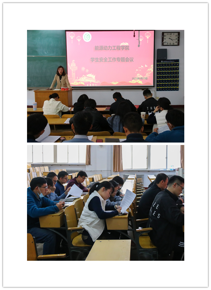 2021年4月13日下午4点,能源动力工程学院于08101H召开了2020-2021学年第二学期学生安全工作暨四月份班主任会议,全院辅导员、班主任老师一同参加了会议。
