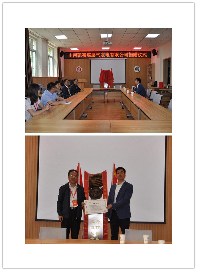 5月19日上午,山西凯嘉煤层气发电有限公司张志飞总经理为学校捐赠“合作共赢,至诚至信”的木雕摆件。山西凯嘉煤层气发电有限公司与色情小说
