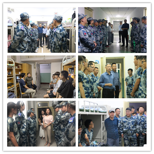 李东光副校长深入每一间宿舍,亲切地与学生交流,细心地询问同学们对学校、学院的认识与对未来发展的期望,同时解答了同学们的各种困惑。李校长对新生提出了三点希望:一是要尽快调整状态,适应大学生活;二是要学会独立,与同学、室友建立良好的人际关系;三是要树立远大理想,成为德才兼备的社会主义建设者和接班人。李运芝书记与刘汉涛院长就学院的具体情况为新生进行了详细介绍,从多彩活动到学业规划,从专业建设到学科发展,增强了同学们对学院的归属感。任雁副书记从小处着手,针对南北方地域性差异,提醒新生注意气候变化、饮食安全以及军训期间要注意的问题。各班班主任强调:要注意自身的健康状况,合理饮食,尤其是在军训时出现不适时要及时和教官反馈。