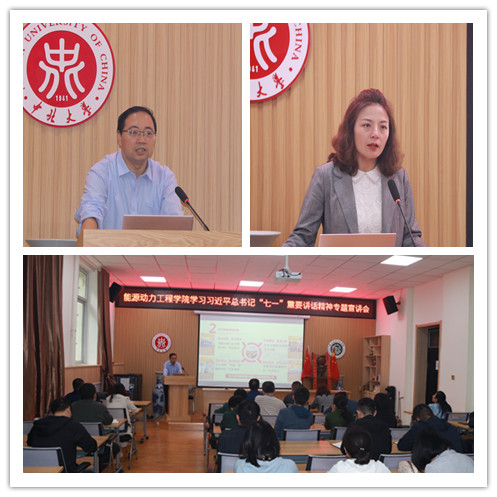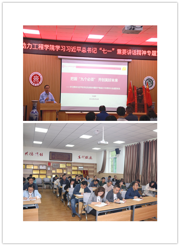 学习习近平“七一”重要讲话精神宣讲安排》(党史办[2021]18号)文件要求,2021年9月28日上午,能源动力工程学院在诚学楼115会议室举行党史学习教育第三轮专题宣讲,本次宣讲邀请到校宣讲团成员马克思主义学院思政课骨干教师王建军老师担任主讲嘉宾。本次宣讲活动由院党委副书记任雁主持,学院全体教工党员参加了学习。