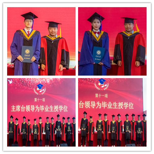 关于授予2023届毕业生梁书涵等325名同学学士学位的决定》。随后各位领导为毕业生逐一授予学位并合影留念。
