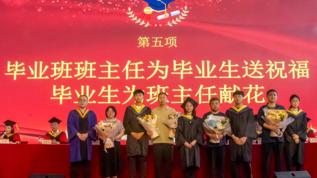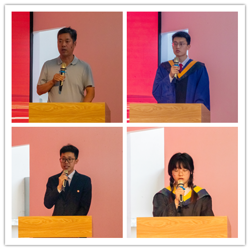“玉壶在冰心,朱笔写师魂,谆谆如父语,殷殷似亲友”,毕业班班主任为毕业生送上寄语与祝福,期望同学们前途似锦。“拳拳赤子心,师恩永难忘”,毕业生代表为班主任献上花束,感谢班主任的教导和奉献。毕业生代表Y201601班雒晓伟同学、本科生代表19160143班李文慧同学上台发言,表达了所有毕业生对学校和学院的感恩和眷恋。教师代表、山西省教学名师尉庆国老师,在校生代表、校十大青年人物万邦宸,为毕业生们送上祝福与期望。