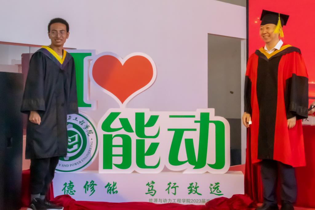毕业典礼在毕业生张悦然、杨世璞、赵梓宇、刘雅婷同学带来的快闪中拉开帷幕。杨世文老师、王强老师分别宣读了优秀研究生毕业生名单和优秀本科生毕业生名单。2023届毕业生与学院互赠了纪念品。学院为每位毕业生准备了一枚印有“毕业生姓名”的定制纪念币,它承载着学院“明德修能,笃行致远”的校训,也道出了母校的不舍与期盼。2023届毕业生代表武文韬向学院敬赠礼物——“我爱能动”文化展品,这将会成为学院新的热门打卡地标,祝福学院高质量发展。