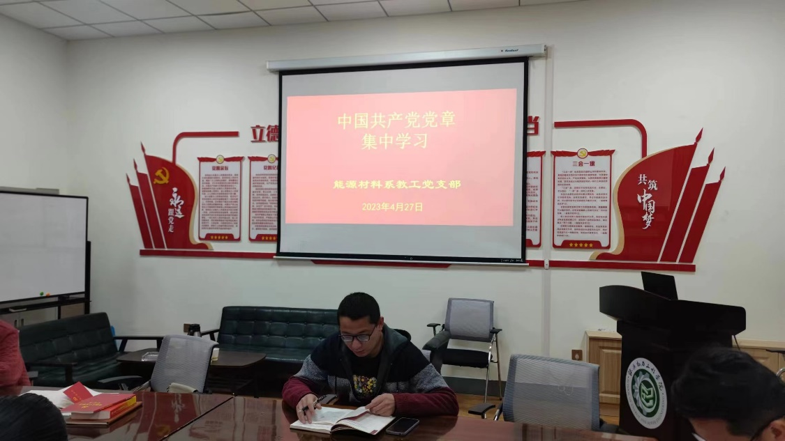 党委安排部署,4月27日,能源材料系教工党支部召开集中学习,通过宣传委员领读、党员自学等方式学习中国共产党章程,重点学习了总纲和关于党员的内容。