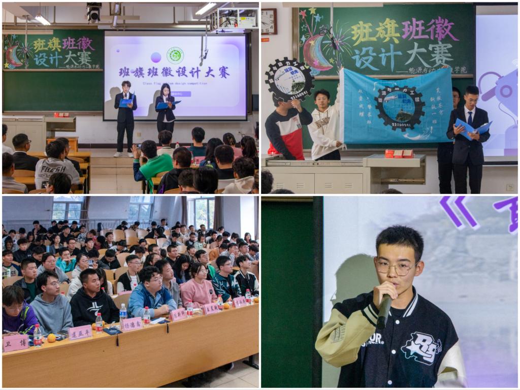 于10月28日下午4:10在15210教室举办了23级班旗班徽设计大赛。学生骨干出席比赛、23级各班级同学参加了本次大赛。大赛由王芊淇和李胤麒同学主持。
