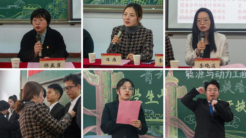 青共校培训暨学生骨干换任大会在08101H教室举行。院党委副书记兼副院长任雁、院团委书记李晓彧、研究生辅导员祁亚萍、上一任学生团委副书记王鑫瑶出席换任大会。学生组织副部及以上工作人员,22、23级各班班团委员参与了本次培训。换任大会由现任学生团委副书记王晨乾主持。
