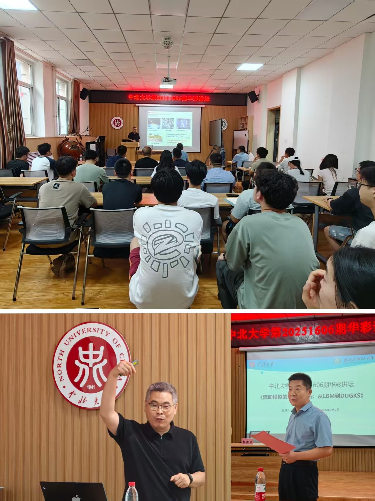 郭照立教授以《流动模拟的动理学方法:从LBM到DUGKS》为题,深入讲解流动模拟动理学方法,从基础理论到实际应用,剖析LBM与DUGKS在复杂流动问题中的特点。在互动环节,郭教授与现场师生展开深度探讨,为他们答疑解惑。