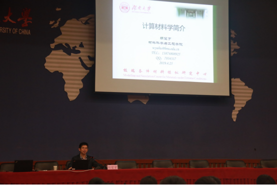 开场主讲人胡教授以一组钢铁侠的图片,引起了大家的兴趣。然后胡教授结合他多年来材料物性研究的专业知识和丰富的科研经验,以极端条件材料模拟为题,为现场师生带来了一场科研领域的视觉盛宴,全场聆听者受益匪浅。胡教授的研究课题建立了系统的原子模拟理论与应用方法,应用于高温高压极端条件下材料研究等领域,为新材料及器件的研究开发提供指导。