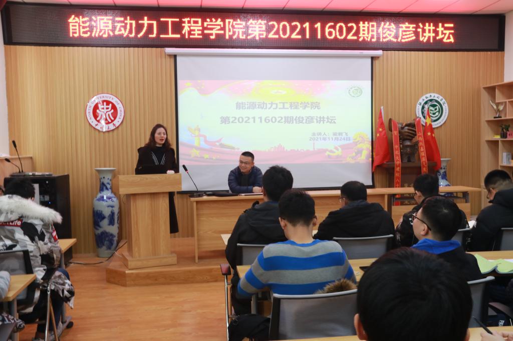 2021年11月24日下午,能源动力工程学院在诚学楼115学术报告厅举办了第20211602期俊彦讲坛,本次讲坛邀请到学院梁君飞教授为研究生作了题为《锂离子电池的前世今生及对科研创新性和系统性的一点思考》的学术报告。讲坛由学院党委副书记兼副院长任雁老师主持,学院部分青年教师和研究生参加了讲坛。