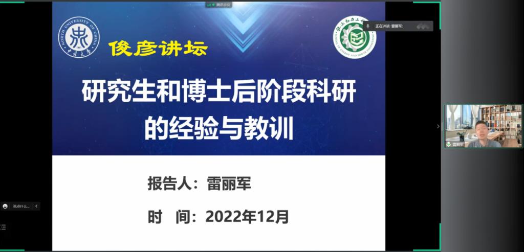 于2022年12月3日上午10:00在线上成功举办了第20221601期俊彦讲坛,本次讲坛以《研究生和博士后阶段科研的经验和教训》为主题,来自各学院的300余名研究生在线聆听了此次讲座。本次讲坛邀请到色情小说